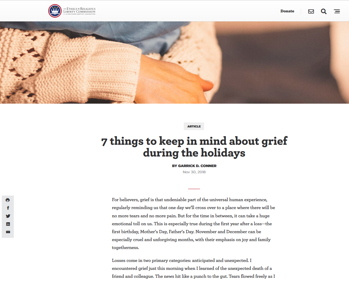 I’m pleased to serve on the content creation team for the Ethics & Religious Liberty Commission of the Southern Baptist Convention. This is the denomination’s public policy arm. Dr. Russell D. Moore, President of the ERLC, has a heart to educate and equip Christians to be knowledgeable about current events and cultural issues so that they may be salt and light in their communities.